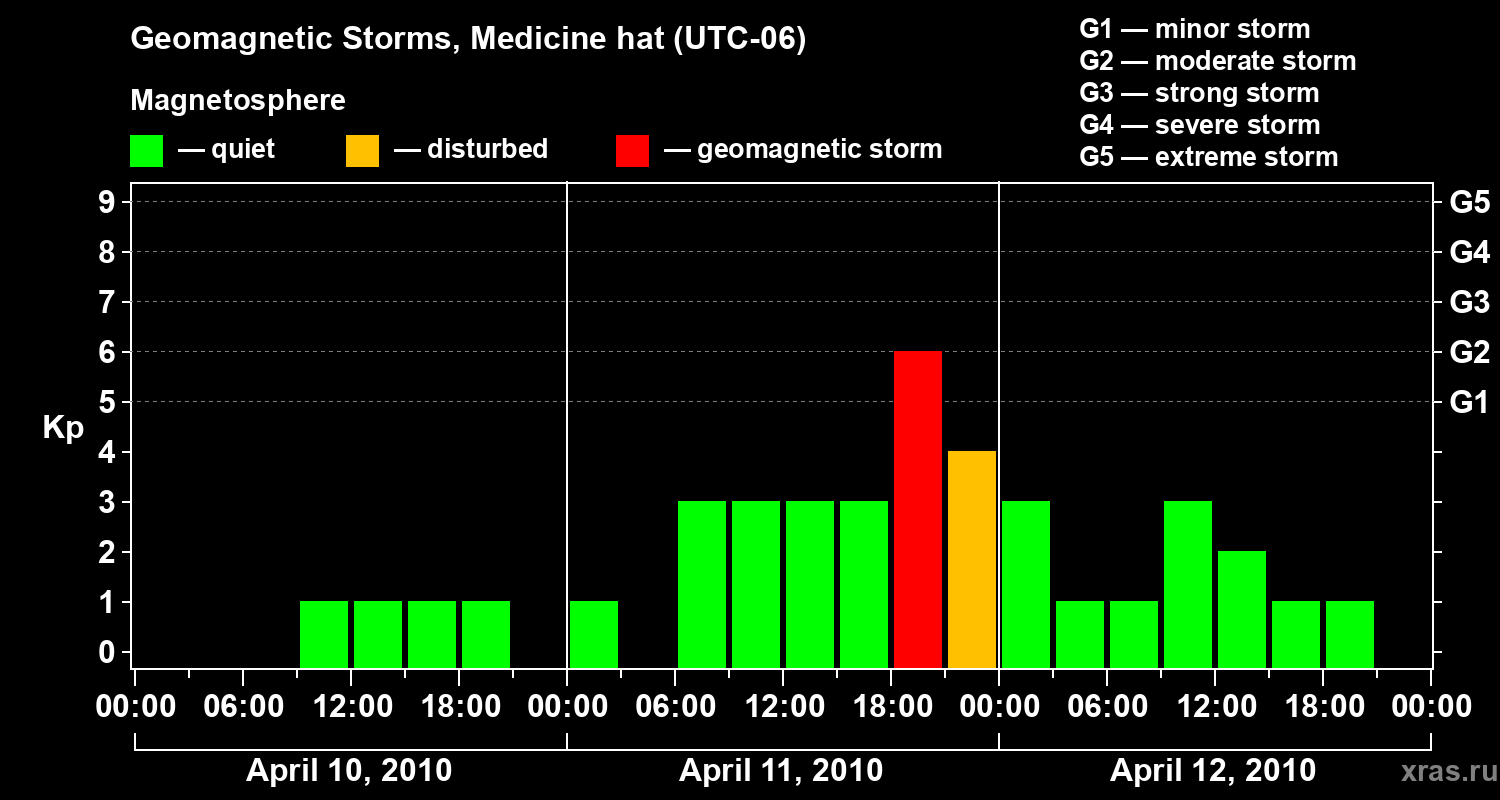 Geomagnetic storms in Medicine hat — Apr 12, 2010