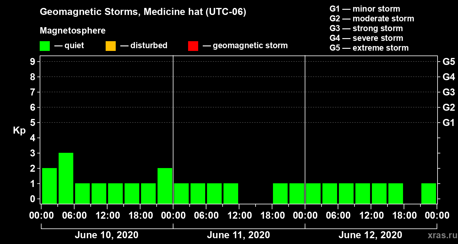 Geomagnetic storms in Medicine hat — Jun 12, 2020