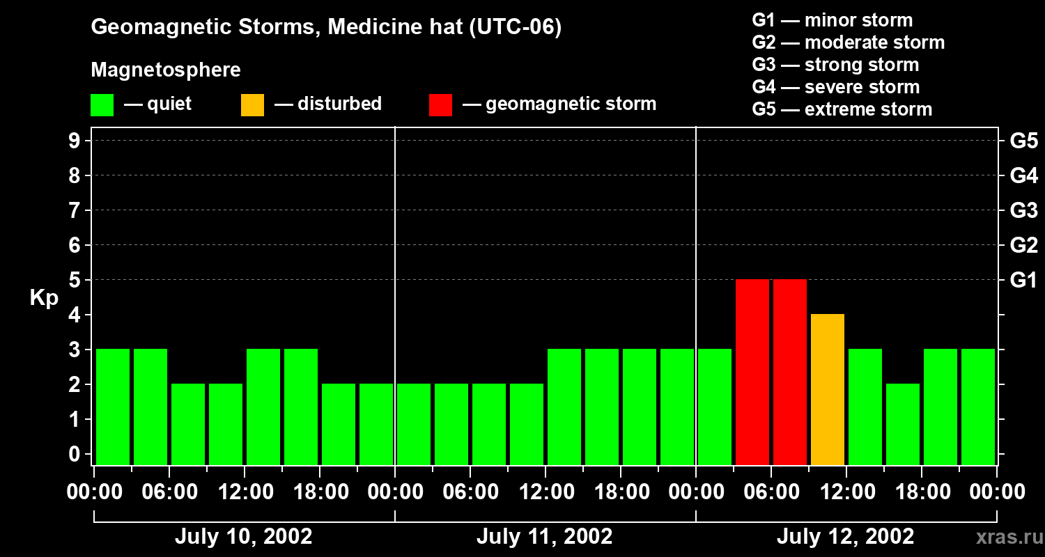 Geomagnetic storms in Medicine hat on Jul 12, 2002