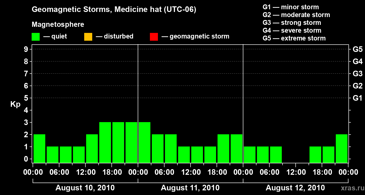 Geomagnetic storms in Medicine hat — Aug 12, 2010