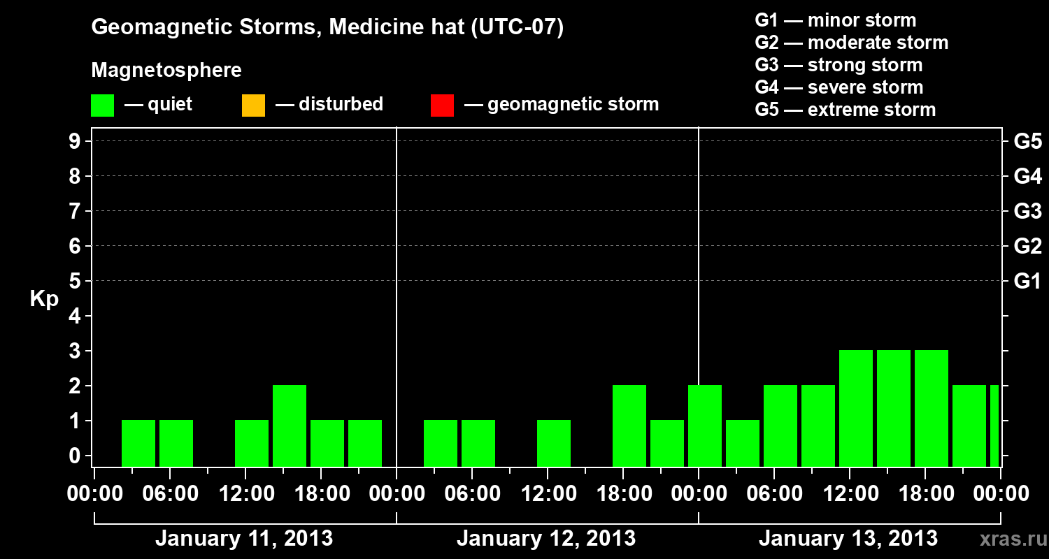 Geomagnetic storms in Medicine hat — Jan 13, 2013