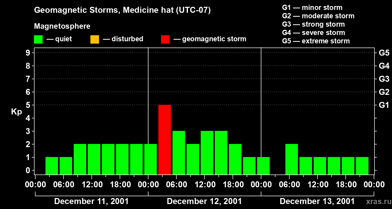 Geomagnetic storms in Medicine hat on Dec 13, 2001