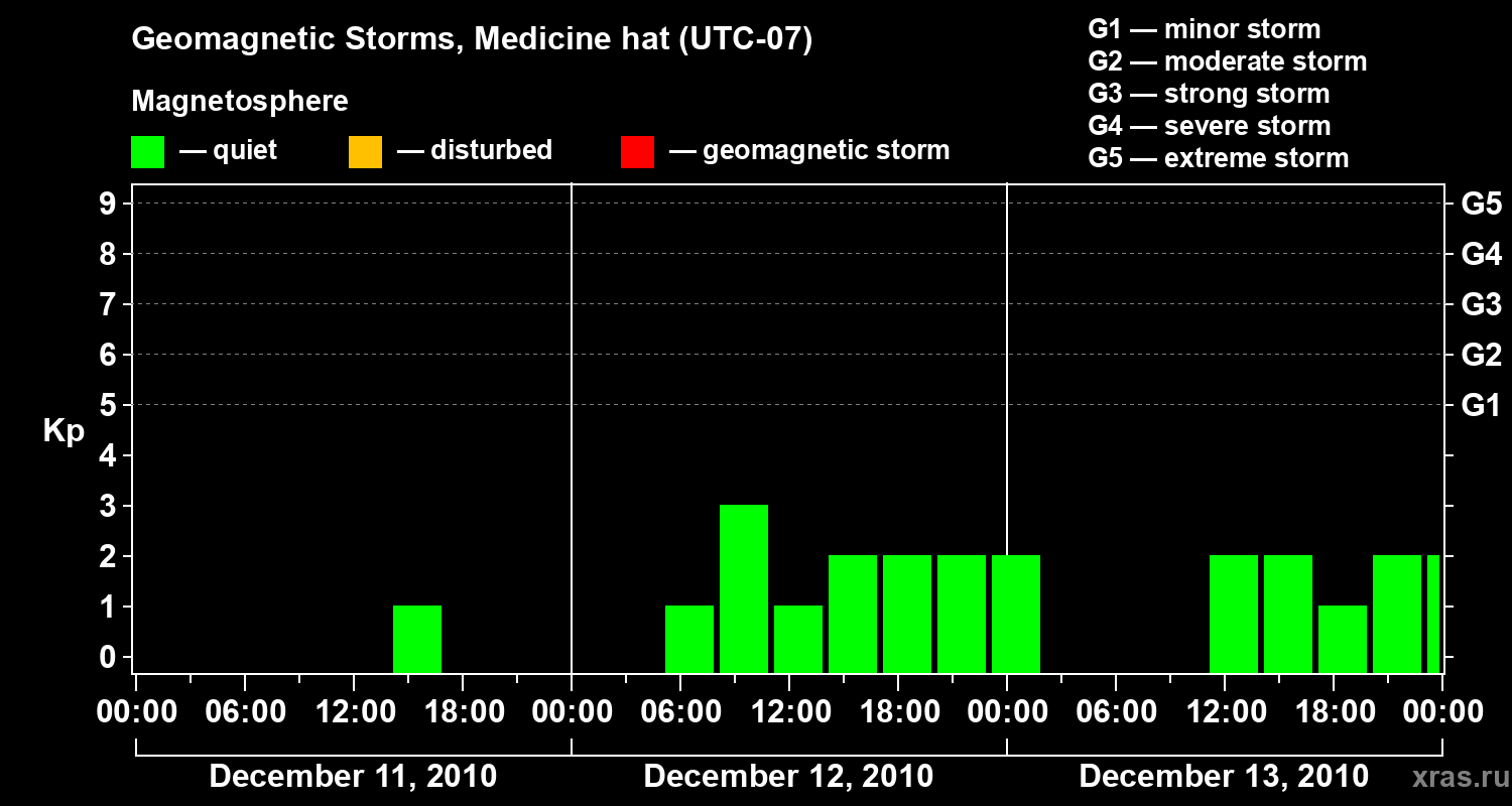 Geomagnetic storms in Medicine hat on Dec 13, 2010