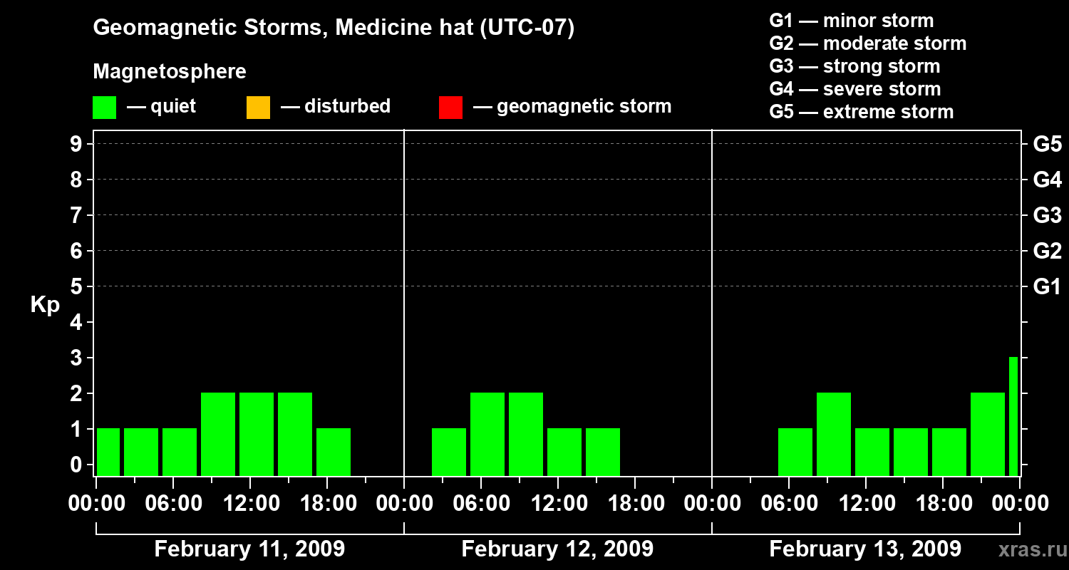 Geomagnetic storms in Medicine hat on Feb 13, 2009