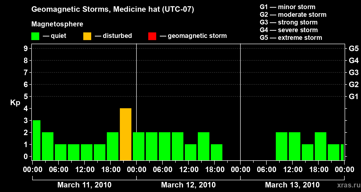 Geomagnetic storms in Medicine hat on Mar 13, 2010