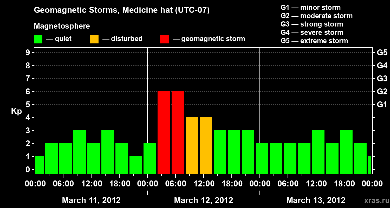 Geomagnetic storms in Medicine hat — Mar 13, 2012