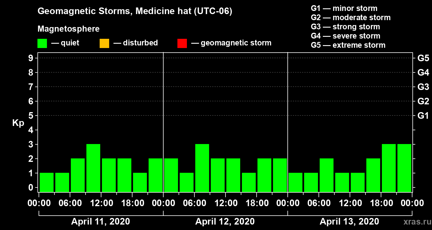 Geomagnetic storms in Medicine hat — Apr 13, 2020