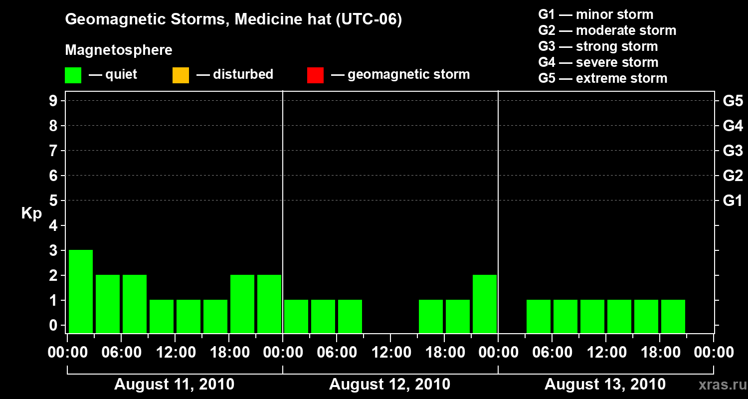 Geomagnetic storms in Medicine hat — Aug 13, 2010