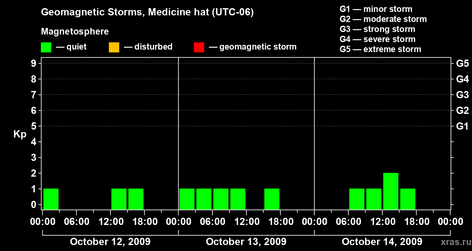 Geomagnetic storms in Medicine hat on Oct 14, 2009
