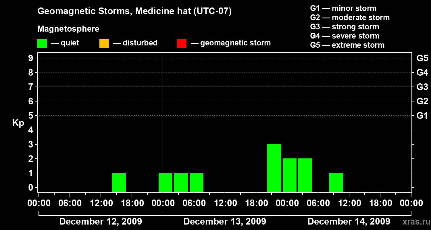 Geomagnetic storms in Medicine hat on Dec 14, 2009