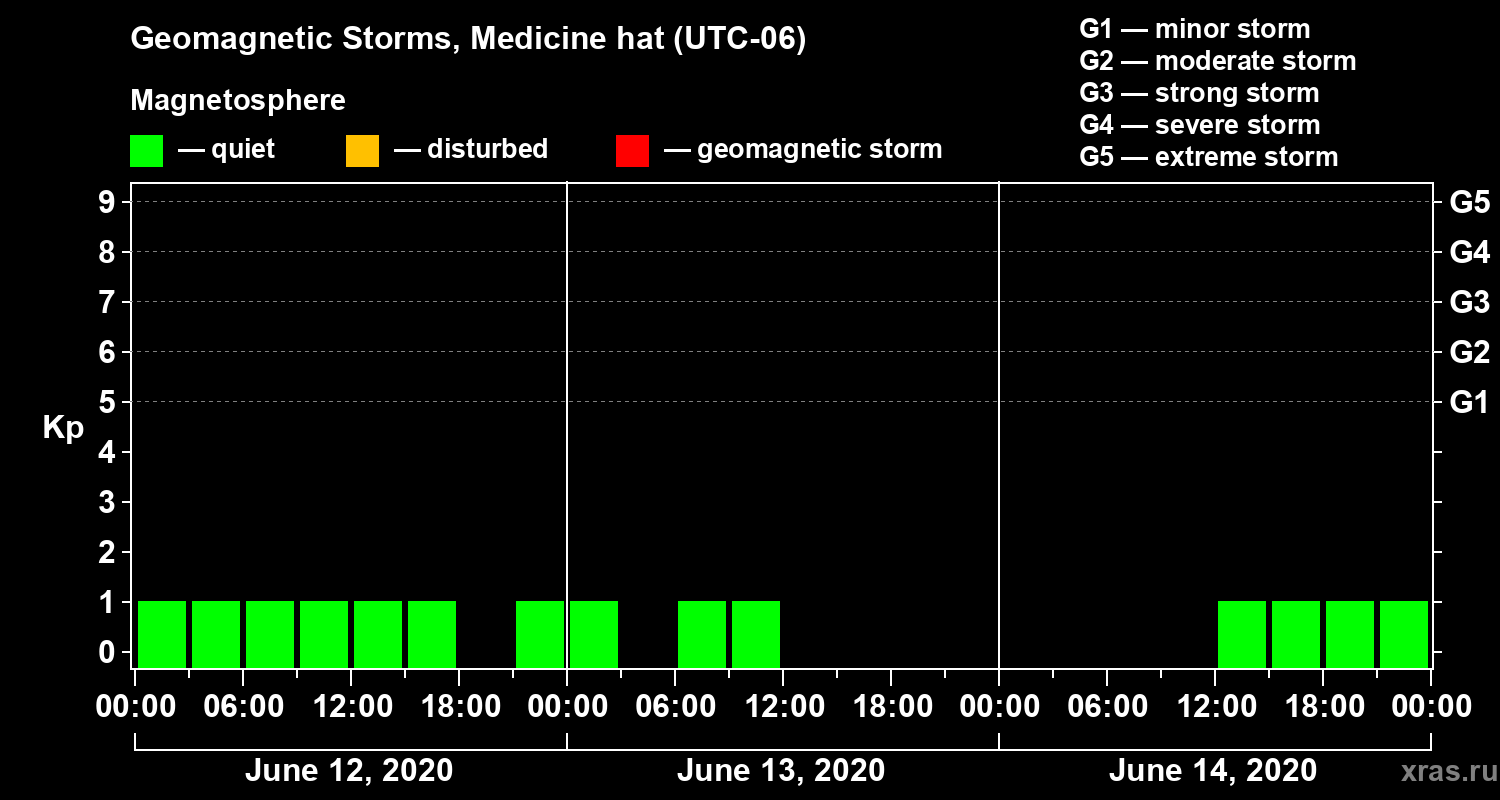 Geomagnetic storms in Medicine hat — Jun 14, 2020