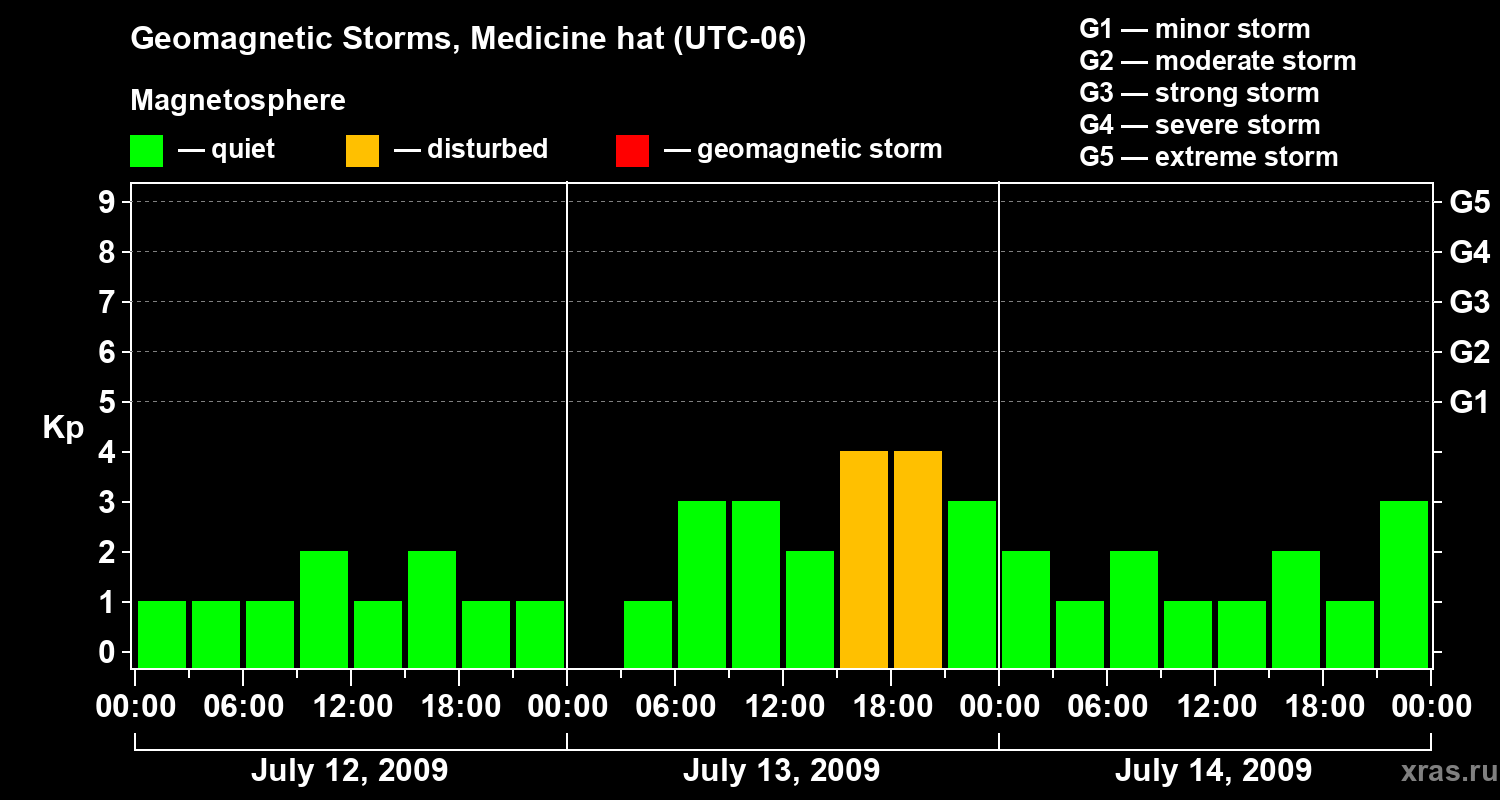 Geomagnetic storms in Medicine hat on Jul 14, 2009