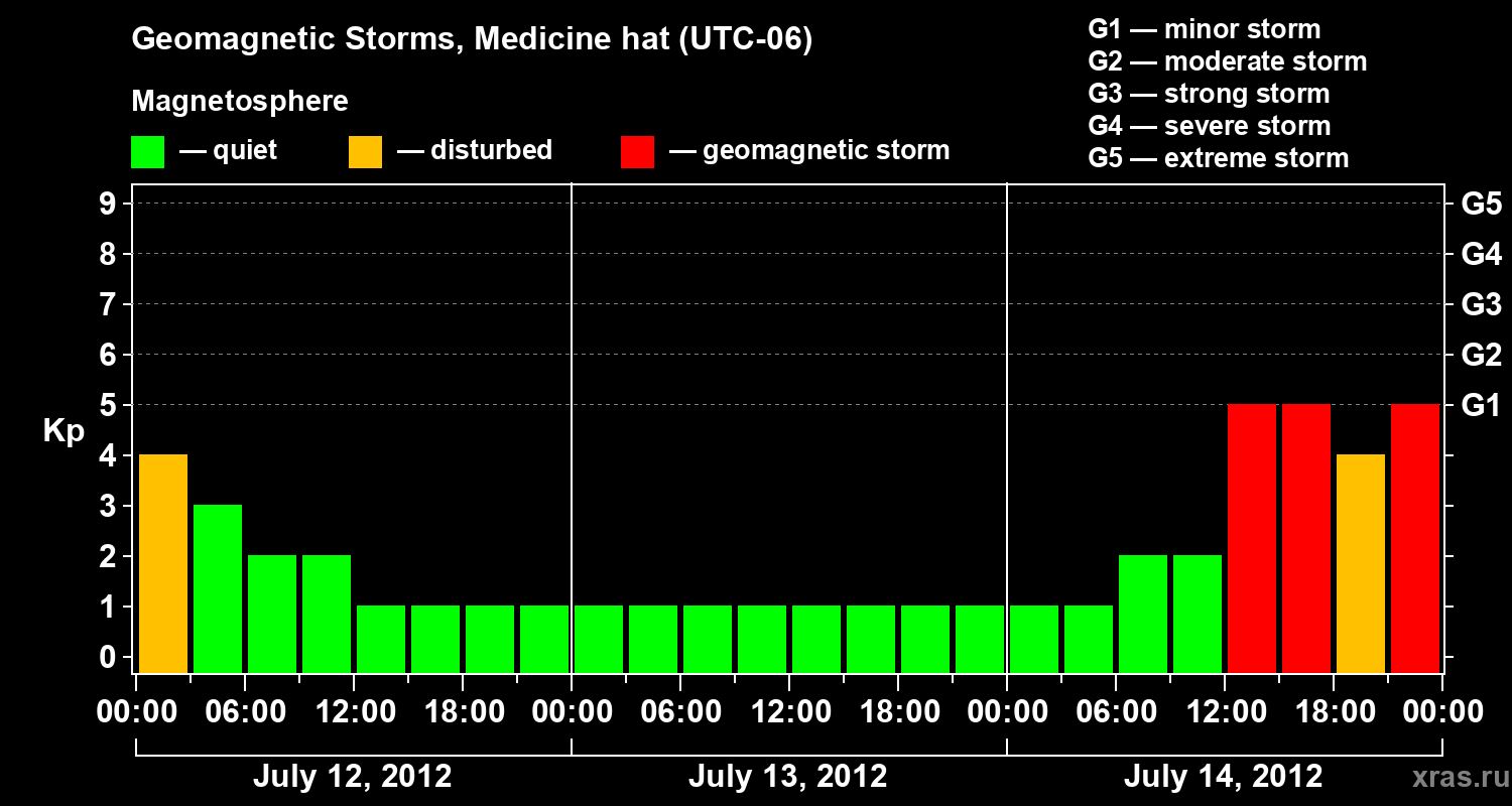 Geomagnetic storms in Medicine hat — Jul 14, 2012