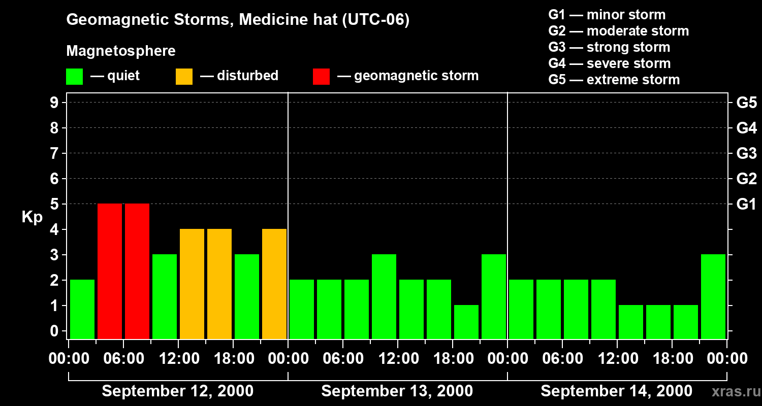 Geomagnetic storms in Medicine hat on Sep 14, 2000