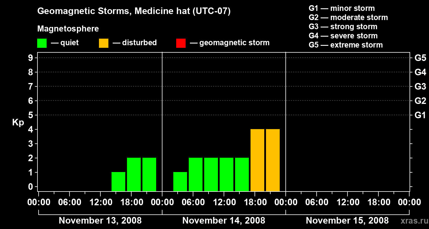 Geomagnetic storms in Medicine hat in November 2008
