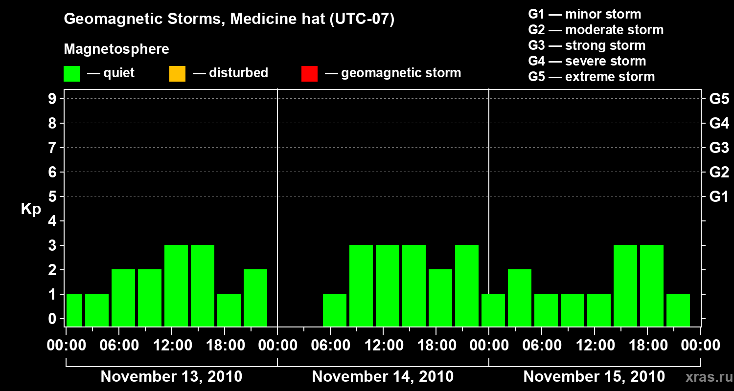 Geomagnetic storms in Medicine hat in November 2010
