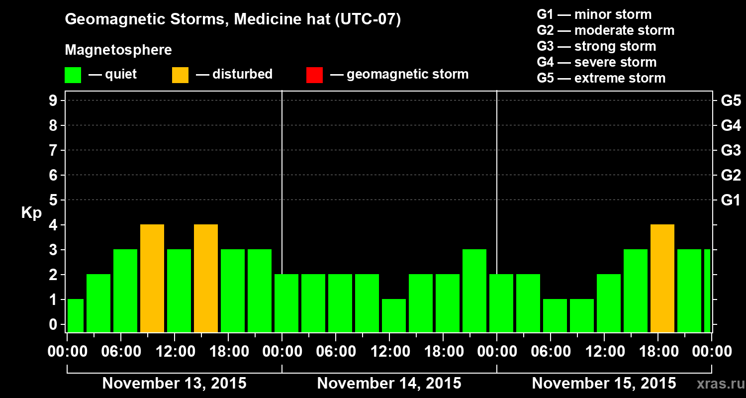 Geomagnetic storms in Medicine hat in November 2015