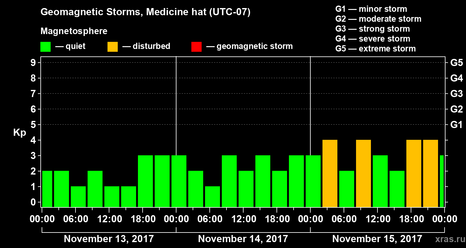 Geomagnetic storms in Medicine hat — Nov 15, 2017