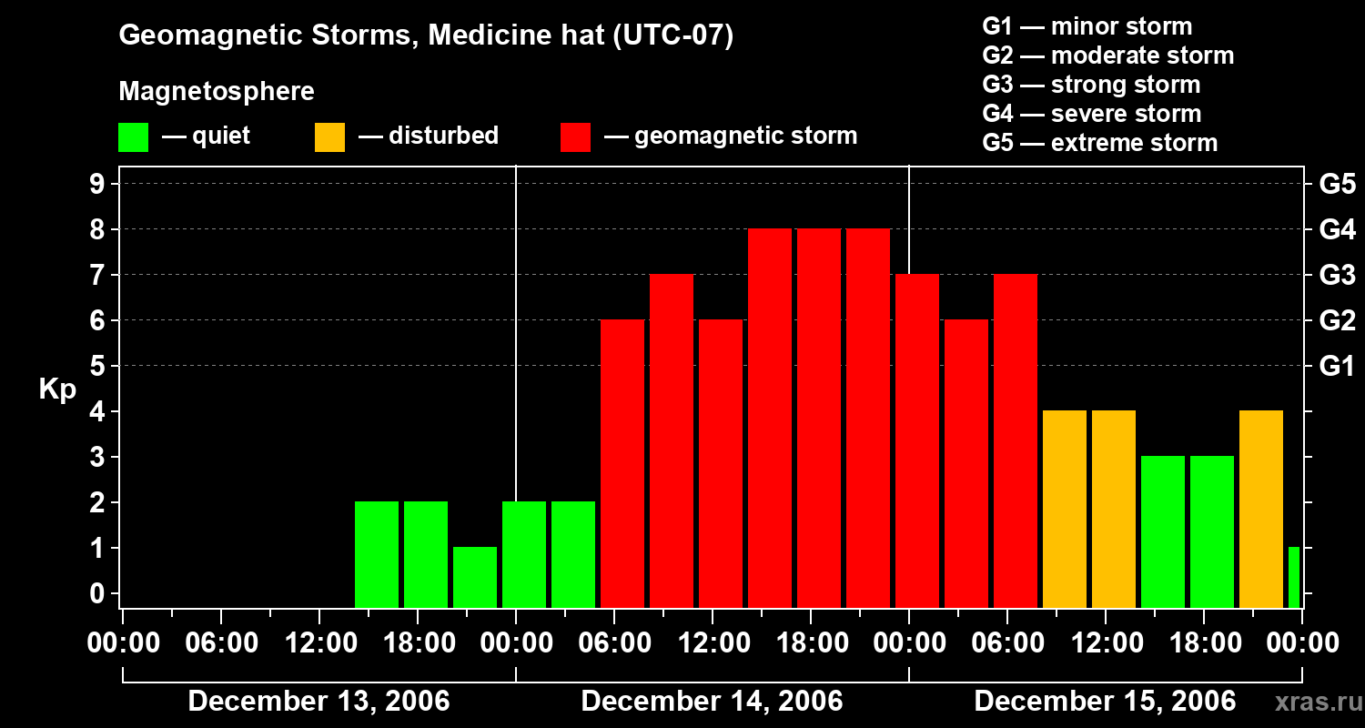 Geomagnetic storms in Medicine hat in December 2006
