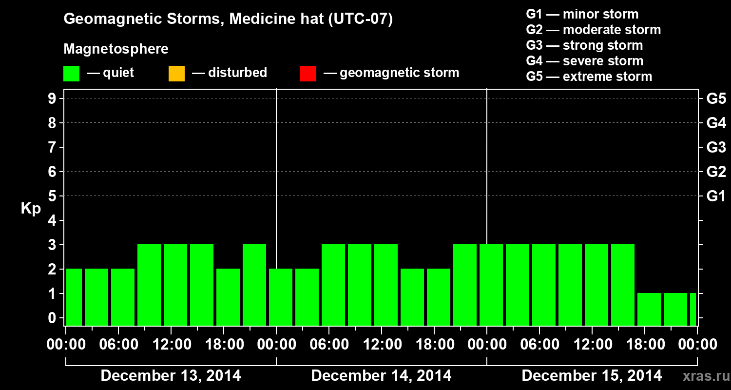 Geomagnetic storms in Medicine hat on Dec 15, 2014