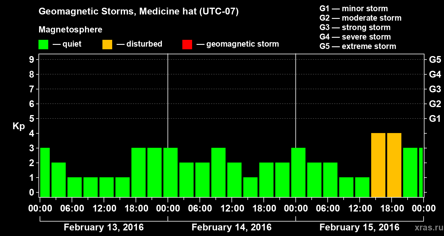 Geomagnetic storms in Medicine hat — Feb 15, 2016