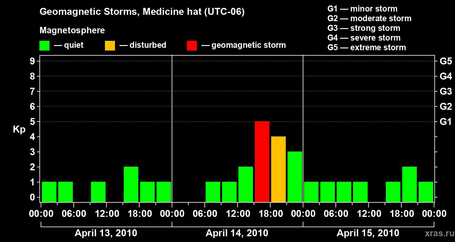 Geomagnetic storms in Medicine hat — Apr 15, 2010