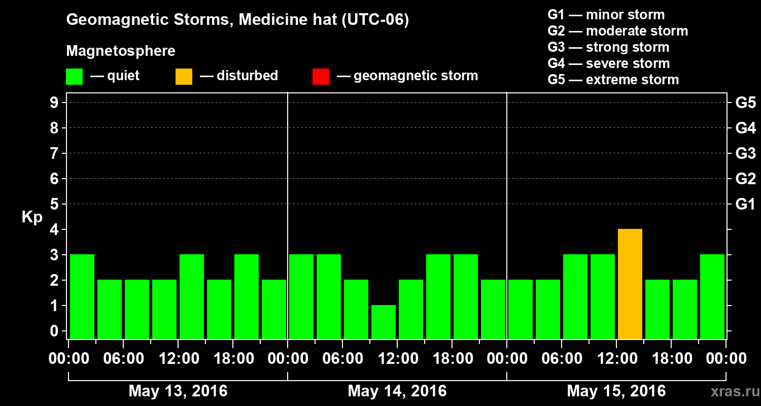 Geomagnetic storms in Medicine hat — May 15, 2016