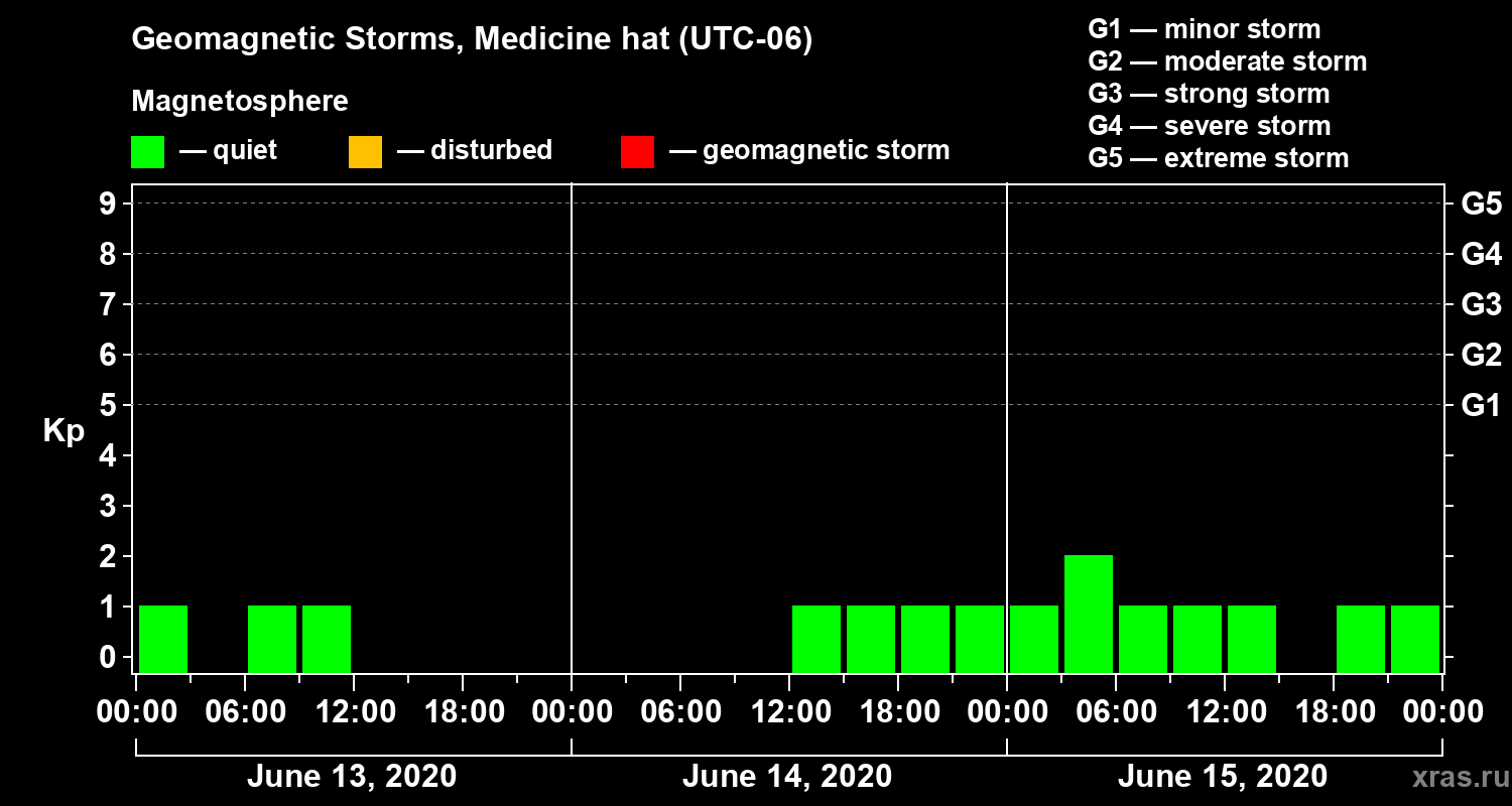 Geomagnetic storms in Medicine hat — Jun 15, 2020