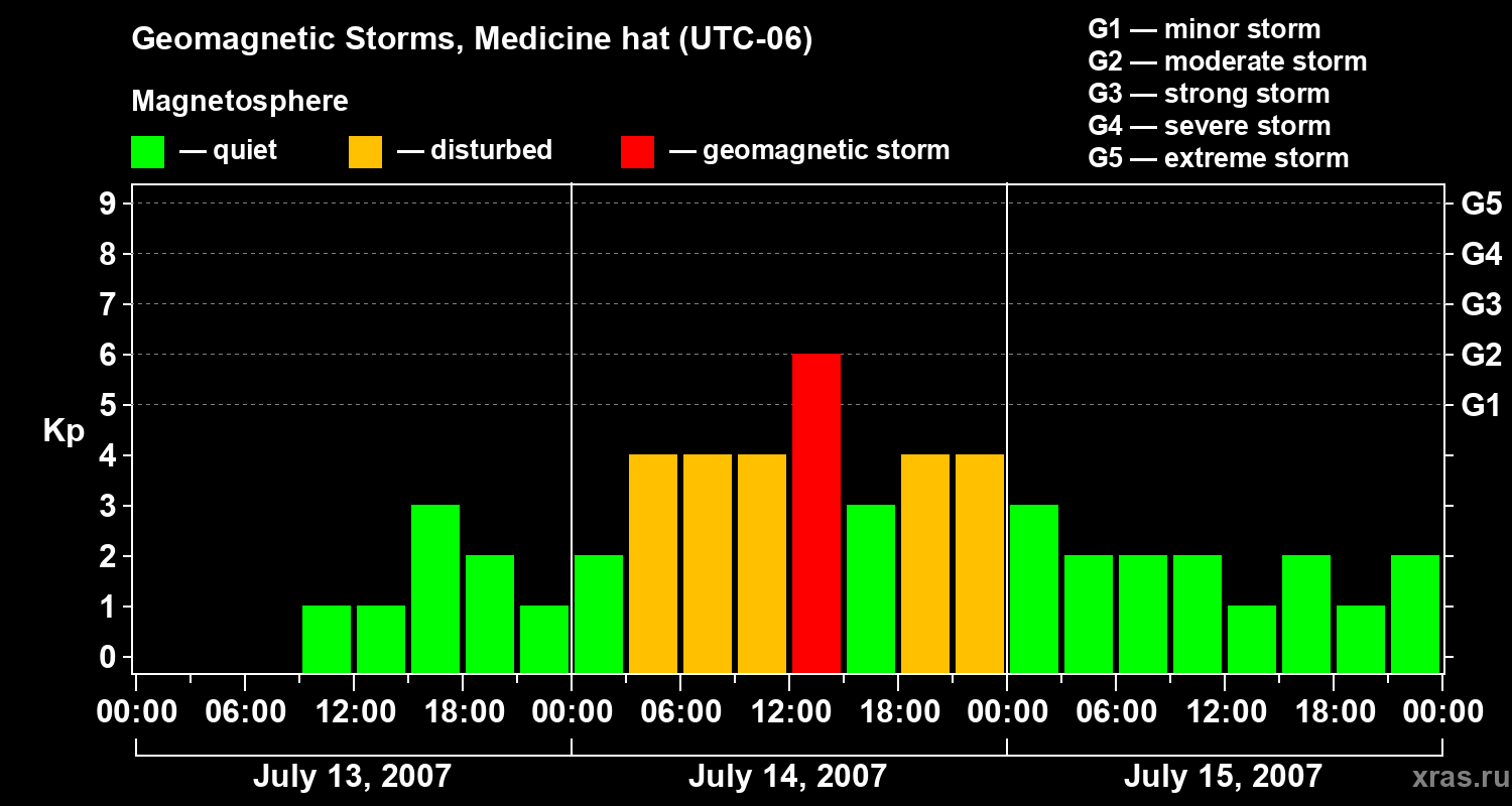 Geomagnetic storms in Medicine hat — Jul 15, 2007