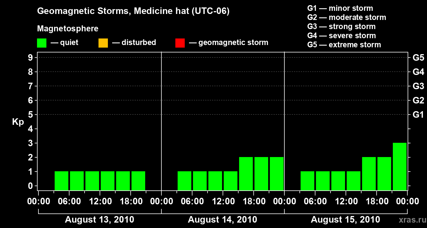 Geomagnetic storms in Medicine hat — Aug 15, 2010