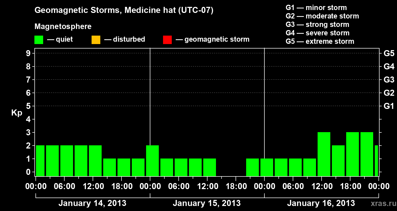 Geomagnetic storms in Medicine hat — Jan 16, 2013
