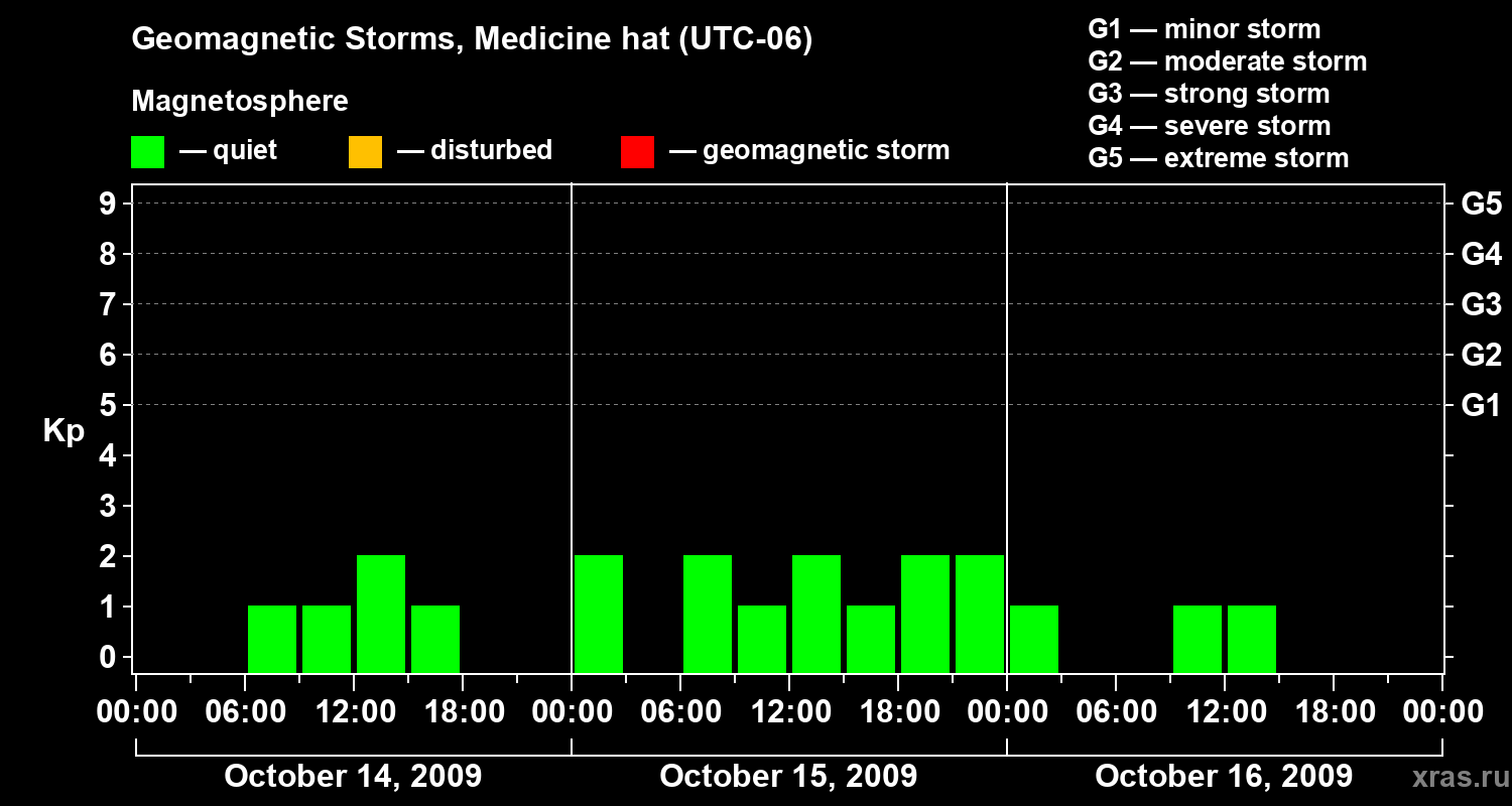 Geomagnetic storms in Medicine hat on Oct 16, 2009