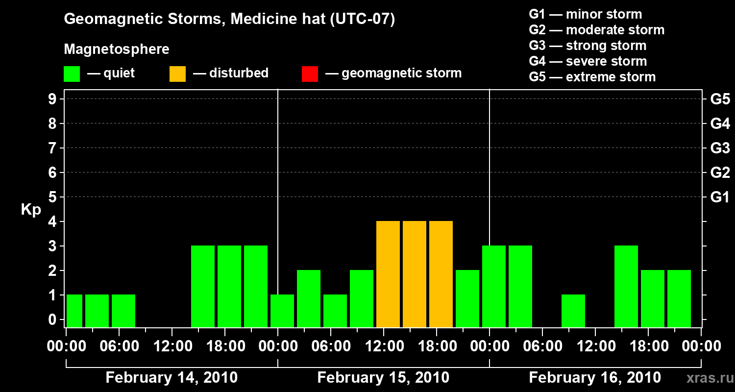 Geomagnetic storms in Medicine hat on Feb 16, 2010
