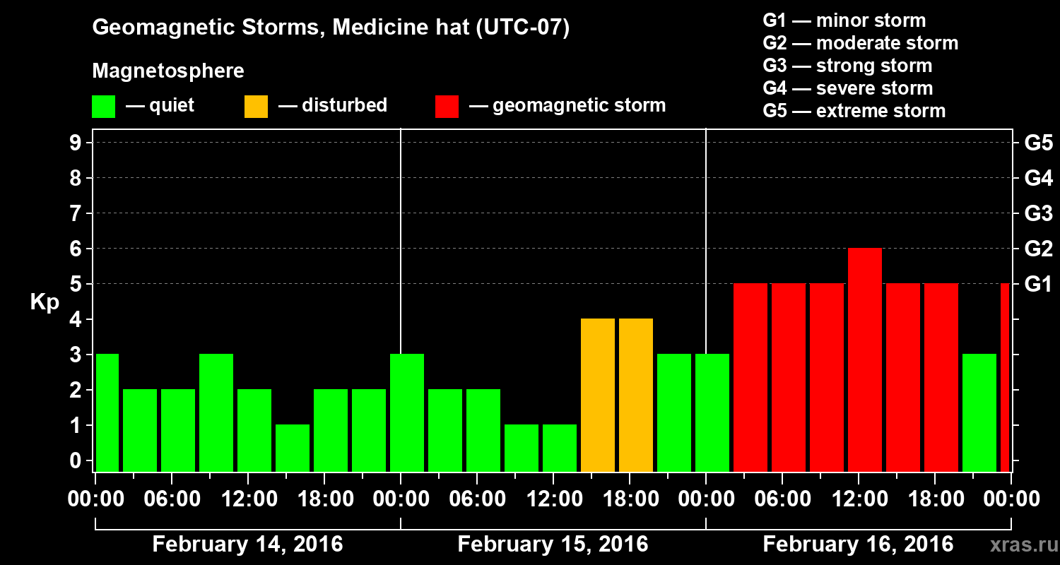 Geomagnetic storms in Medicine hat — Feb 16, 2016
