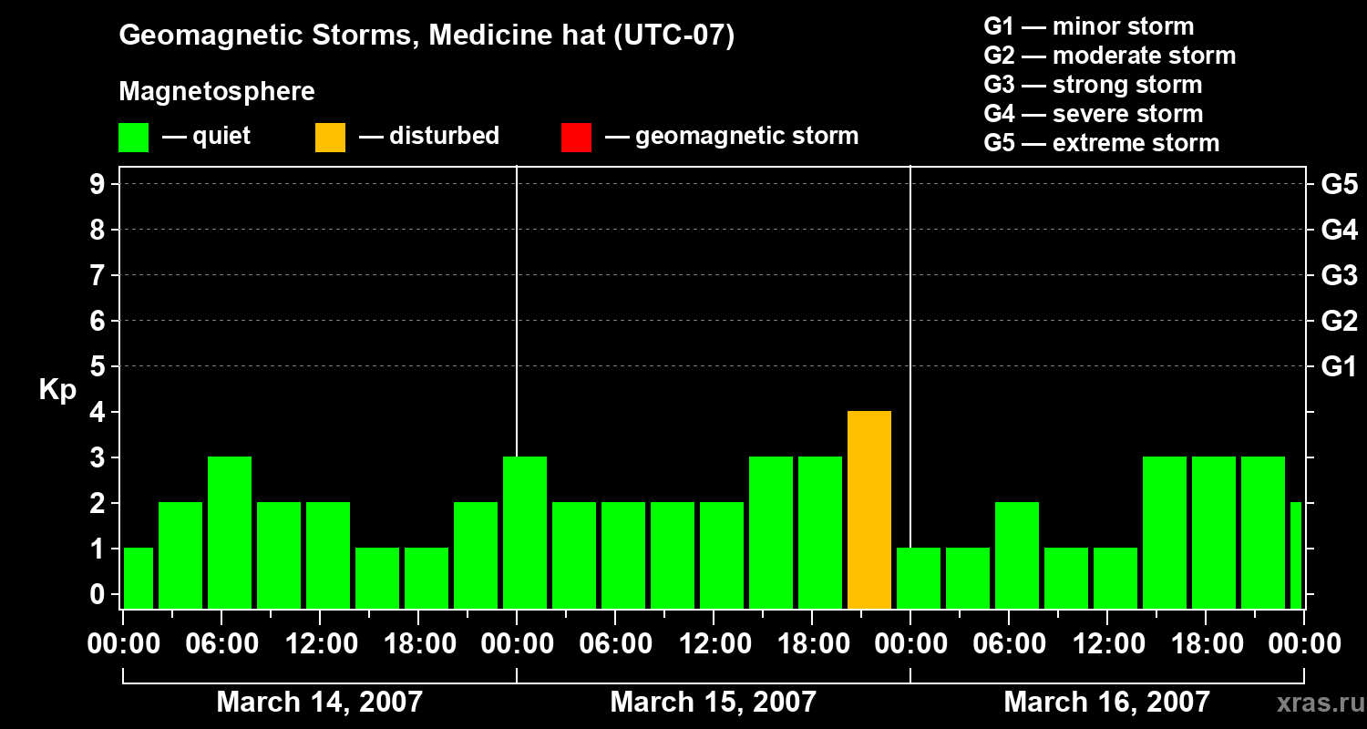 Geomagnetic storms in Medicine hat in March 2007