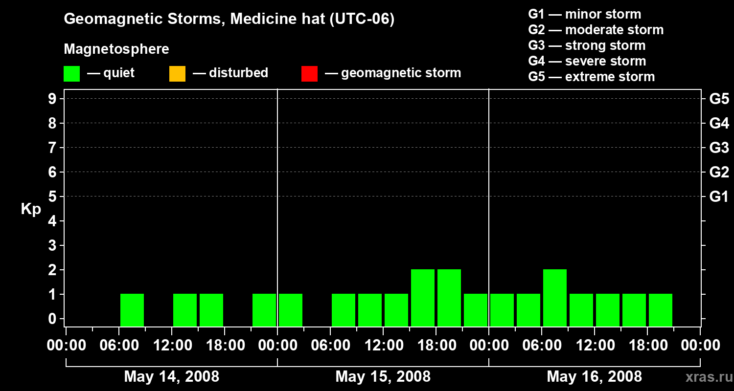 Geomagnetic storms in Medicine hat on May 16, 2008