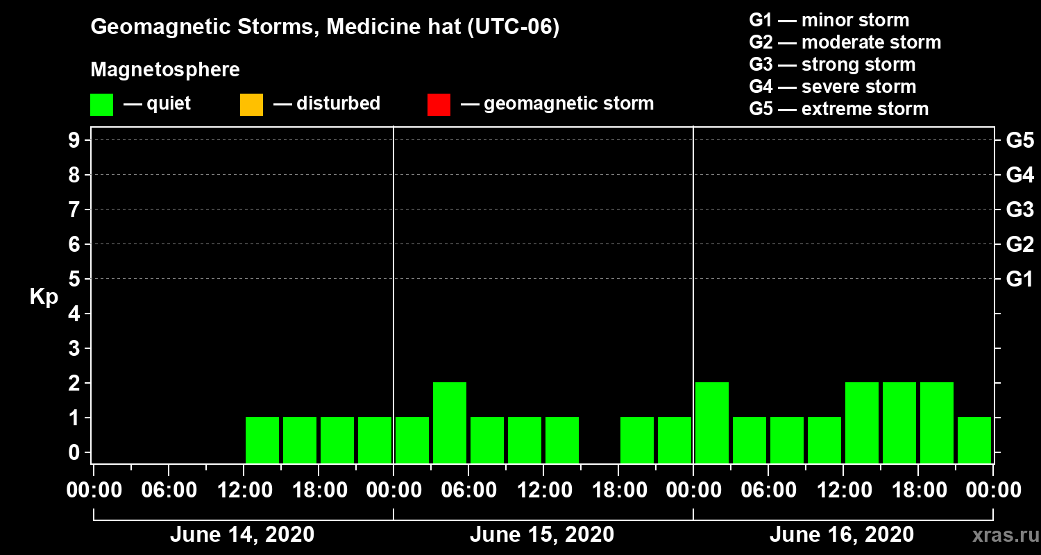 Geomagnetic storms in Medicine hat — Jun 16, 2020