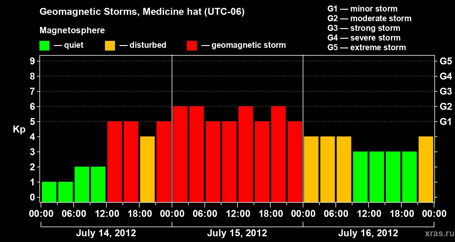 Geomagnetic storms in Medicine hat — Jul 16, 2012