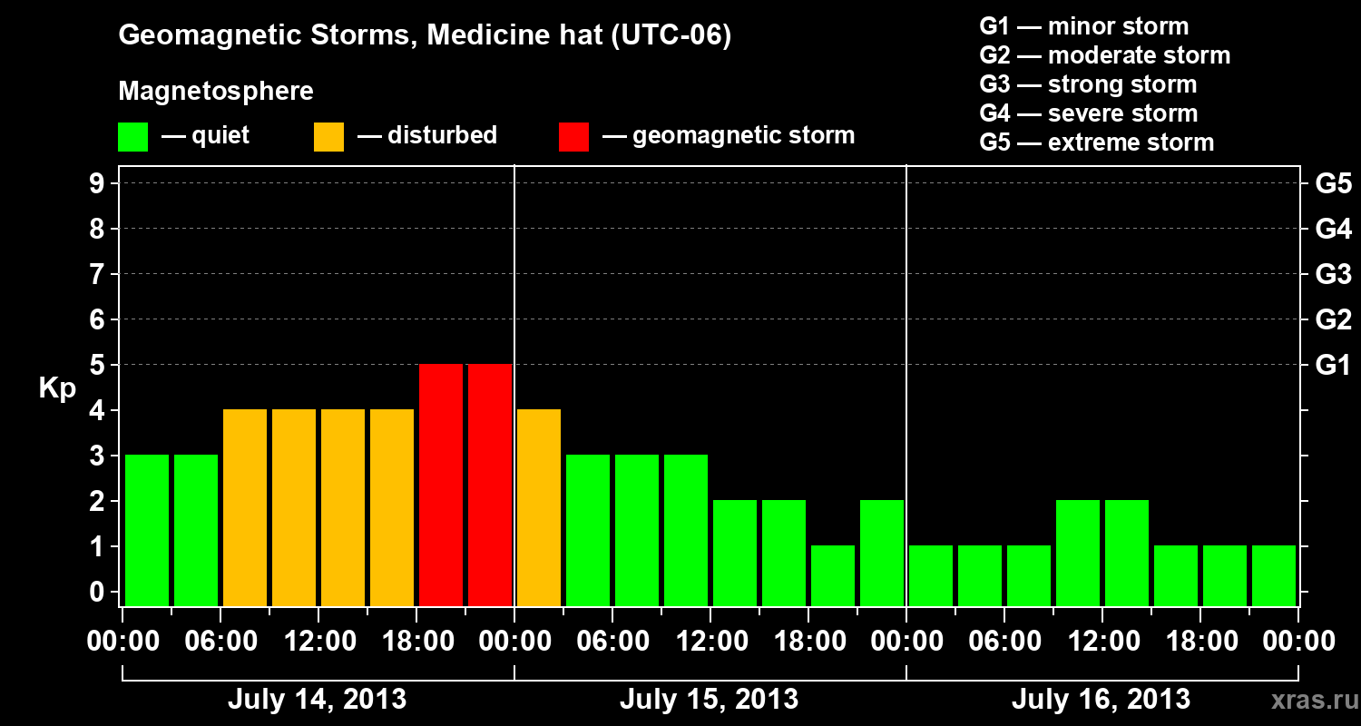 Geomagnetic storms in Medicine hat — Jul 16, 2013