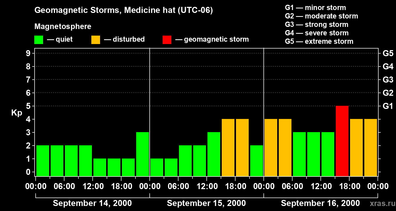 Geomagnetic storms in Medicine hat on Sep 16, 2000