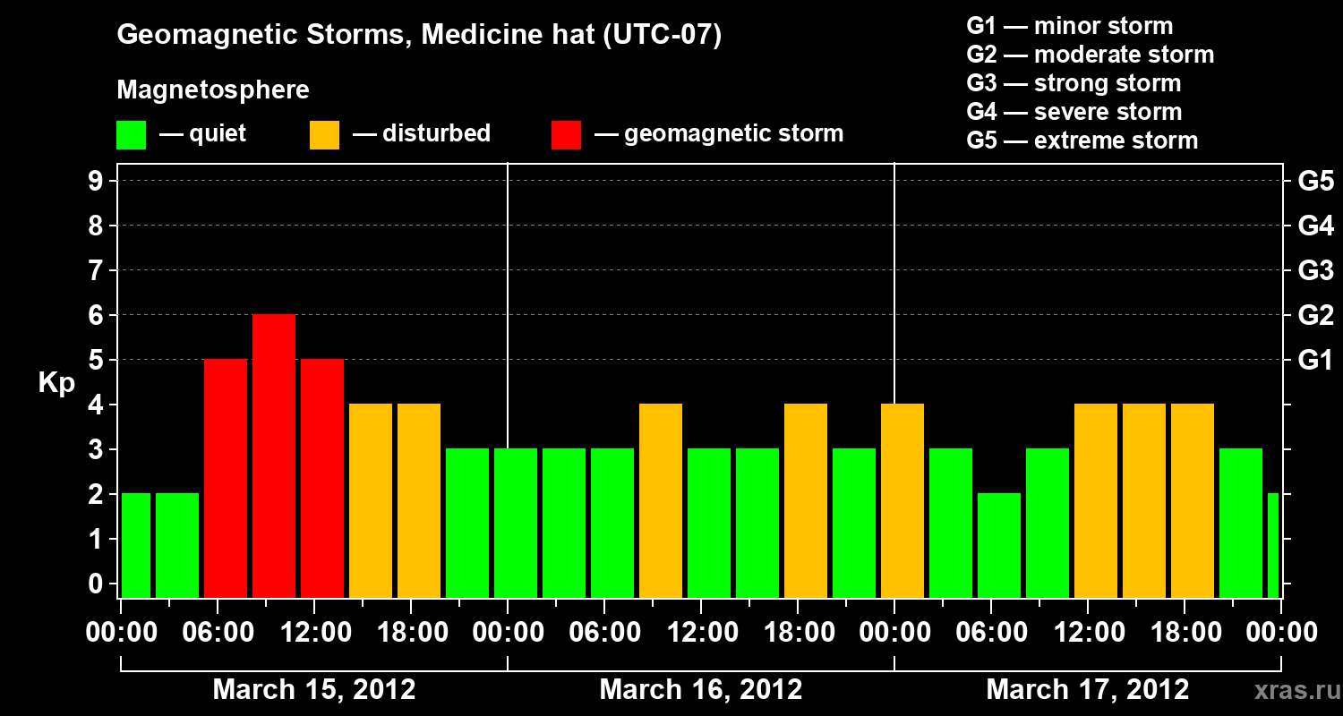 Geomagnetic storms in Medicine hat — Mar 17, 2012