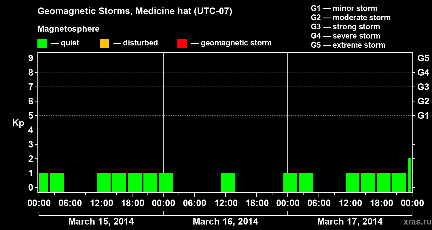 Geomagnetic storms in Medicine hat in March 2014