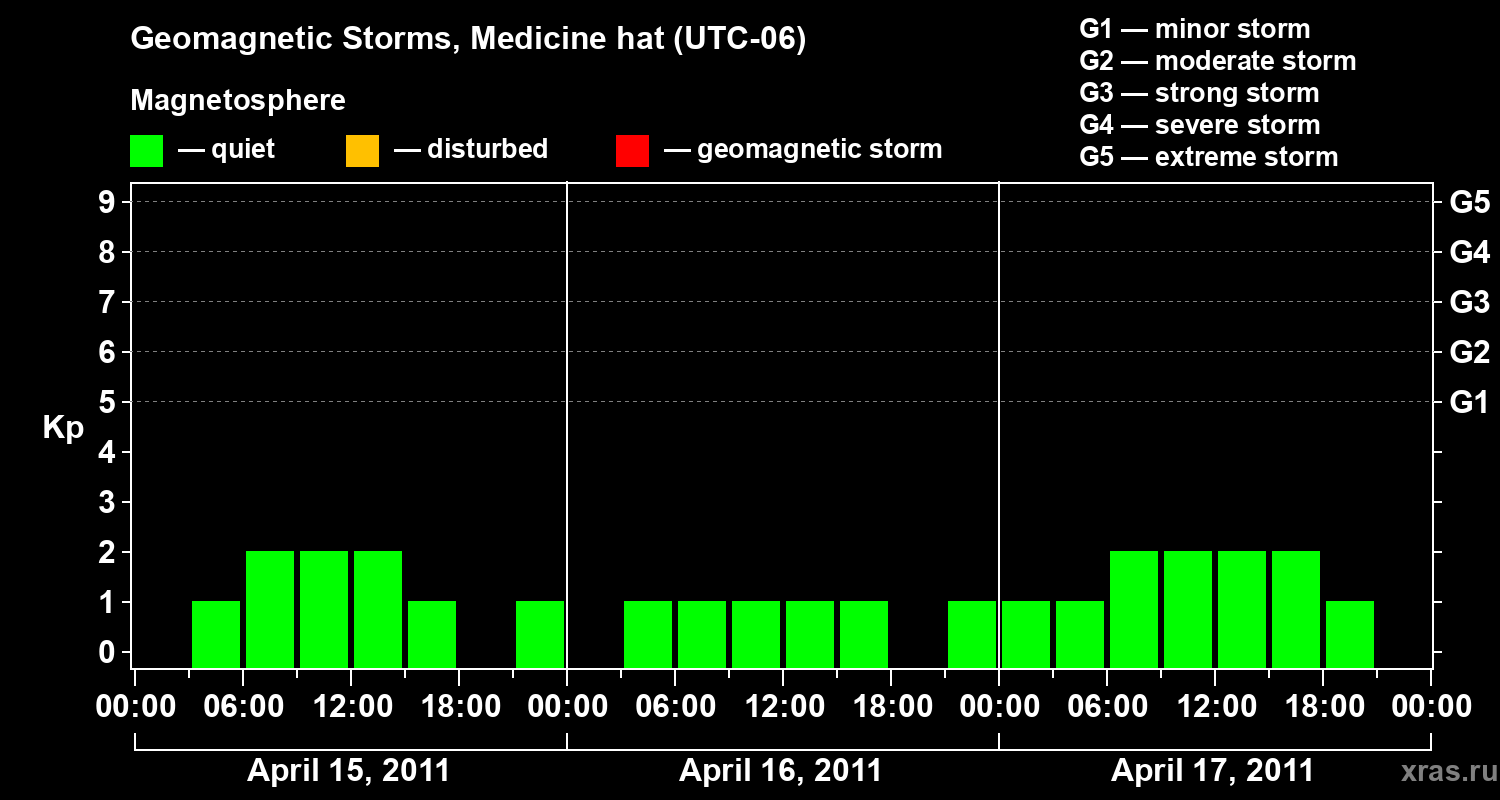 Geomagnetic storms in Medicine hat on Apr 17, 2011