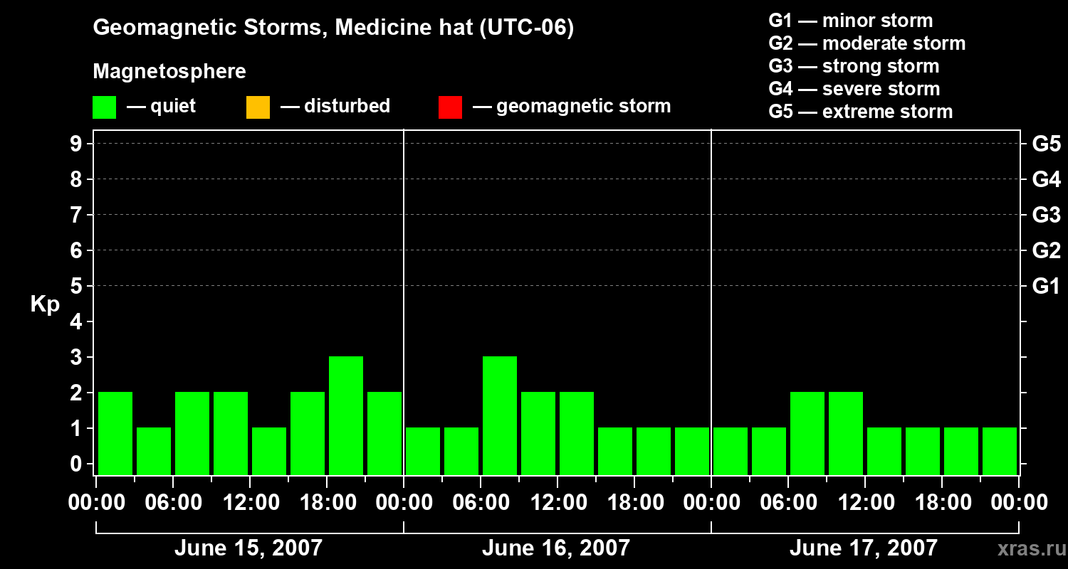 Geomagnetic storms in Medicine hat on Jun 17, 2007