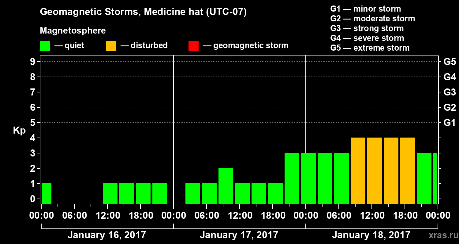 Geomagnetic storms in Medicine hat — Jan 18, 2017