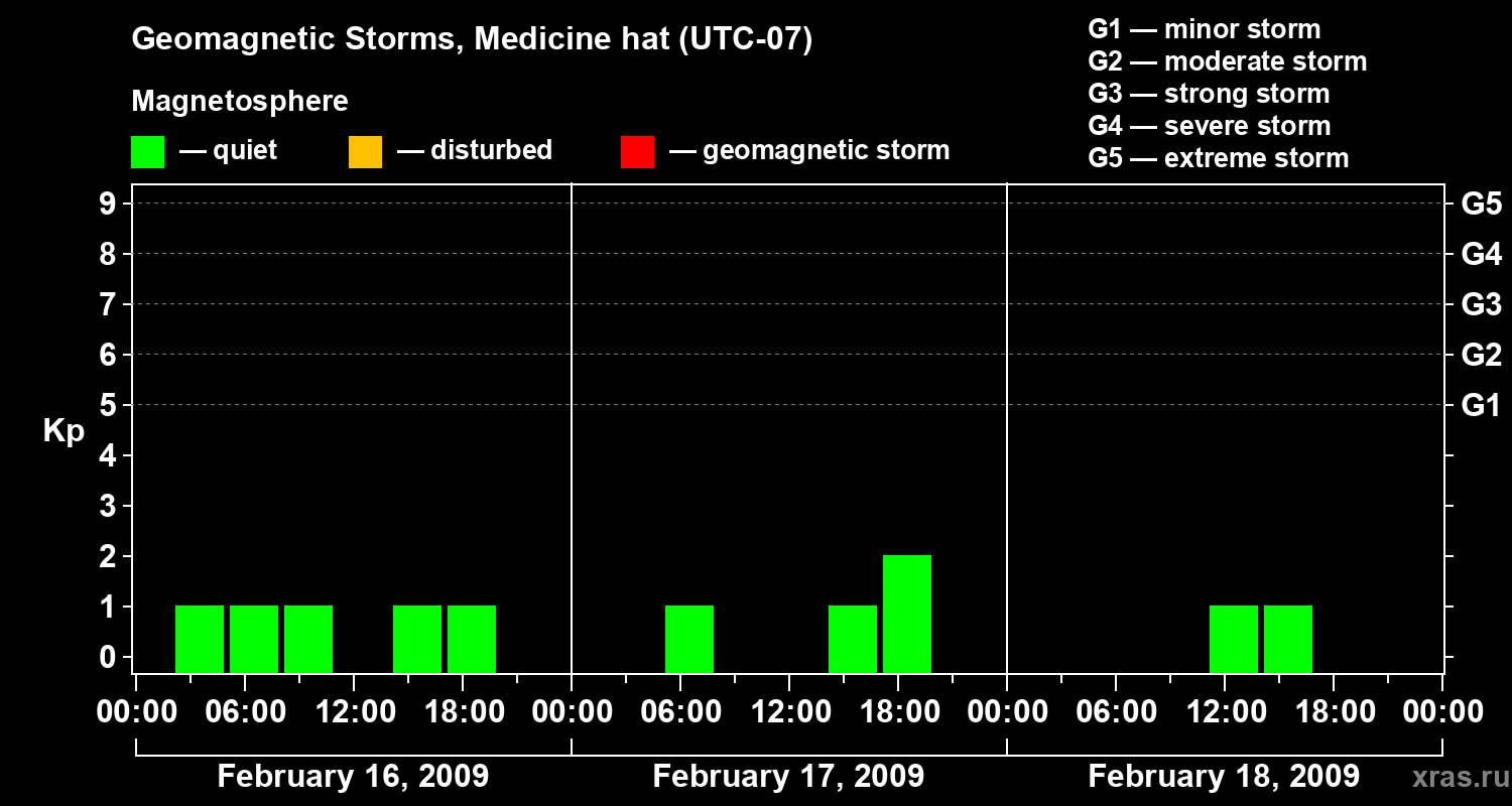Geomagnetic storms in Medicine hat on Feb 18, 2009