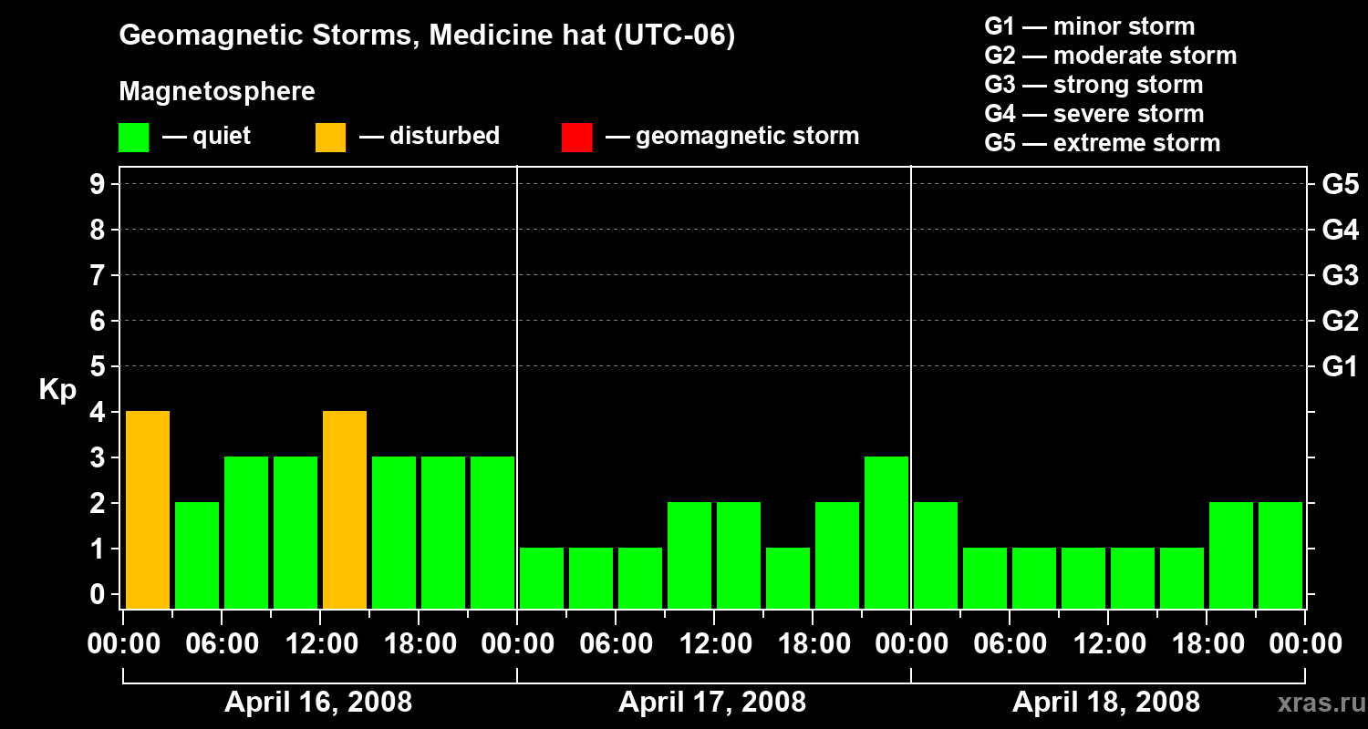 Geomagnetic storms in Medicine hat on Apr 18, 2008
