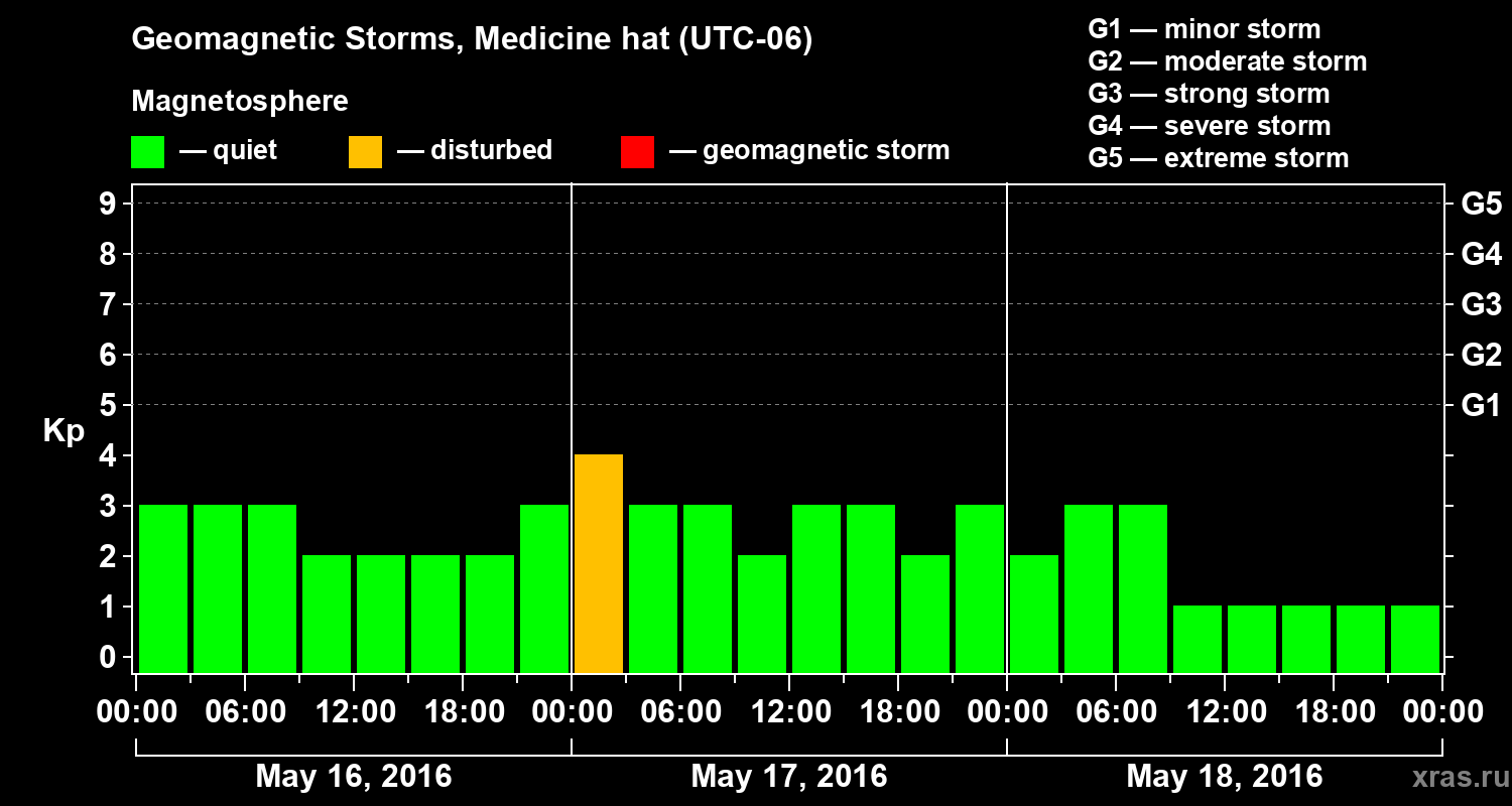 Geomagnetic storms in Medicine hat — May 18, 2016