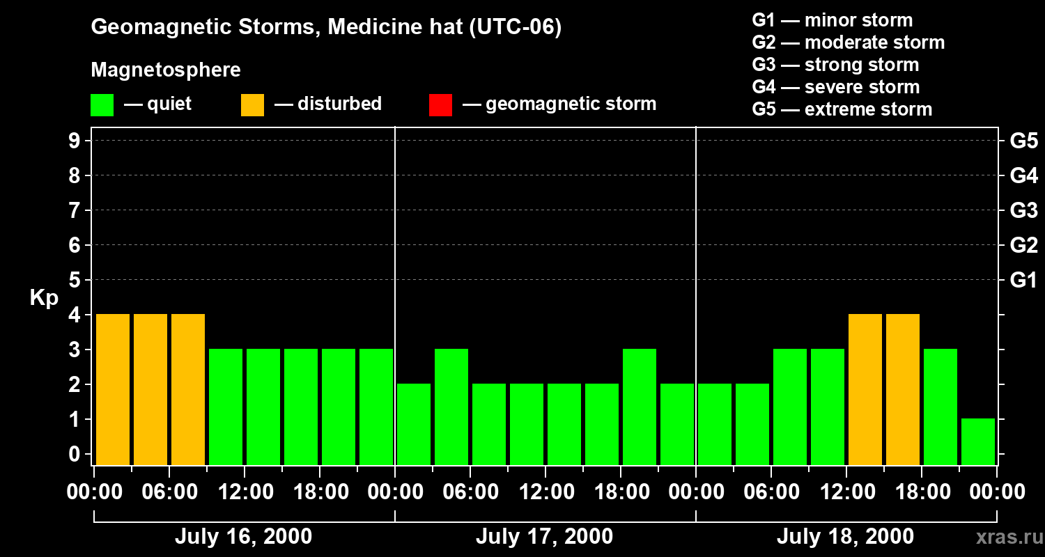 Geomagnetic storms in Medicine hat on Jul 18, 2000