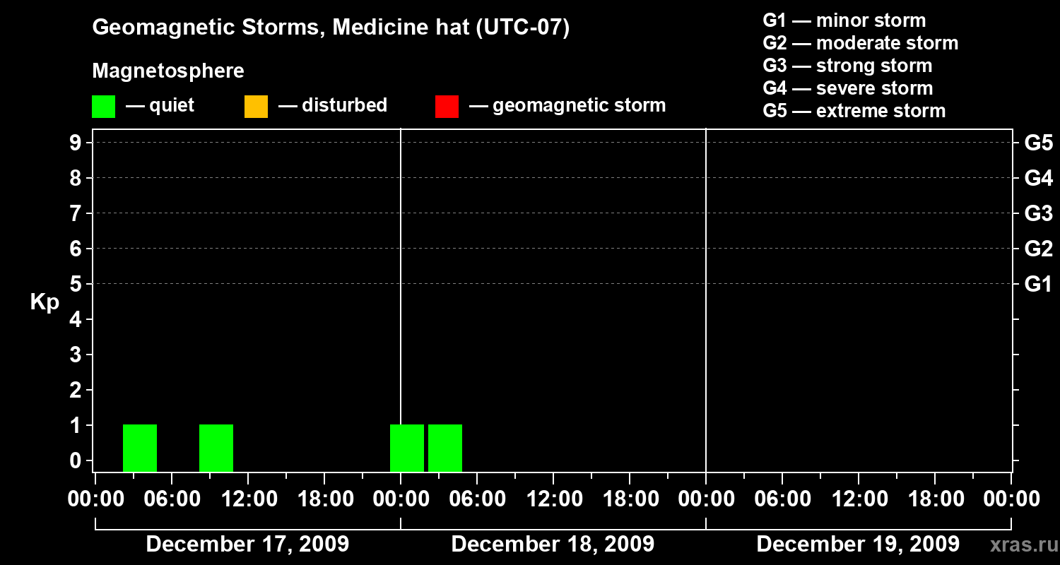 Geomagnetic storms in Medicine hat on Dec 19, 2009